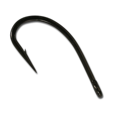 Straight eye, tube trailer hook, black nickel finish, short shank, wide gape, chemically sharpened.