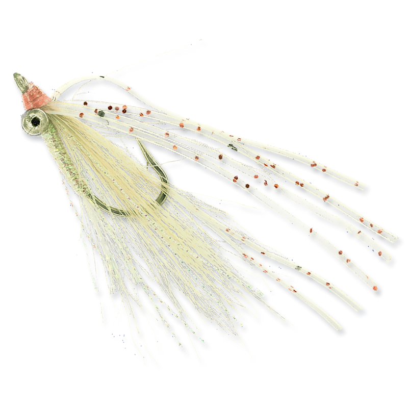 Available in hot and natural colors, and the chain eye version is very effective for bonefish in one to two feet of water.