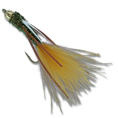 BODY: Peacock Herl, with gold Brassie Ultra Wire