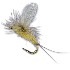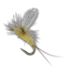 HACKLE: Saddle, light dun - a v-notch cut out of the bottom