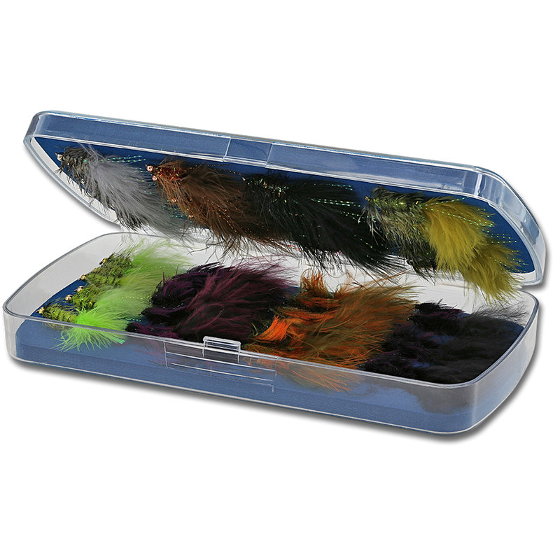 Cliff Outdoors has given us the answers, with their innovative and large boxes and cases. The Bugger Barn shell is hard, durable, clear plastic, lined with slotted foam, and will carry a couple dozen large, long, fresh or saltwater streamers.