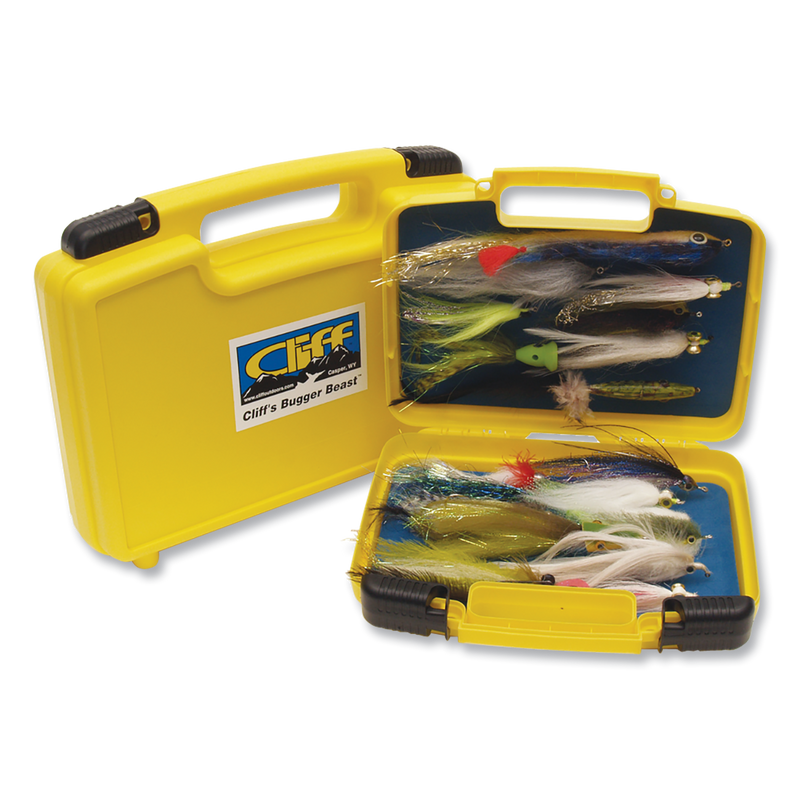 There are anglers out there who like to fish big flies. Big flies catch big fish, but the problem is, "How do you store them?" Cliff® has the answer. The Beast Series uses the same time-tested, hook gripping, slotted blue material as their infamous Bugger Barn. If you are at the stage where you have accumulated and want to organize lots of big flies, we've got the box for you.