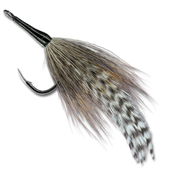 The cockroach pattern is one of the true classic saltwater flies that imitates many different types of food sources for tarpon. The sleek profile and darting action mimic many of the smaller bait-fish found on the flats. But at the same time, the barred grizzly hackle tail and bucktail collar represent shrimp, small lobster and other crustaceans. Tarpon patterns range anywhere from one inch to over a foot in length.