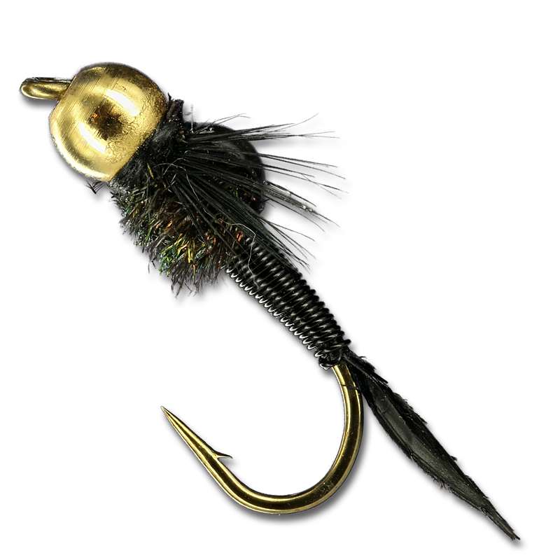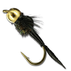 The Copper John combines a Prince Nymph tail, Brassie body, Pheasant Tail style thorax, Mike Mercer's style of Poxyback wingcase and a bead head. Truly innovative, the bead head and wire body help get this morsel right in the dining area without the aid of extra weight.