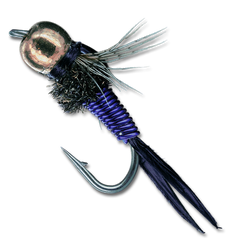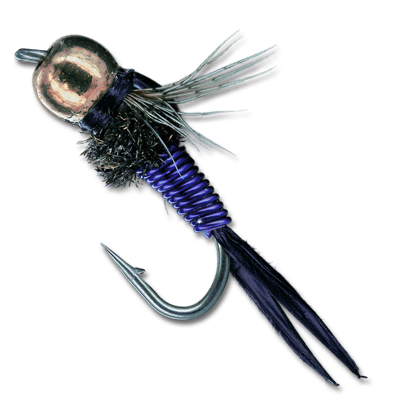 The Copper John combines a Prince Nymph tail, Brassie body, Pheasant Tail style thorax, Mike Mercer's style of Poxyback wingcase and a bead head. Truly innovative, the bead head and wire body help get this morsel right in the dining area without the aid of extra weight.