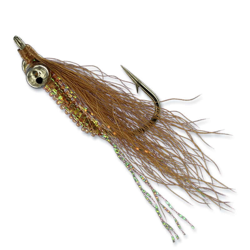 This imitation shrimp pattern was originated by Bob Nauheim, the owner of a California fishing travel company. The original Charlie pattern has been imitated and adapted more than almost any other single salt water fly pattern, to the extent where Crazy Charlies encompass an entire family of bonefish patterns. However, after all the adaptations in color, size and material, the Charlie is an extremely effective imitator of just about every shrimp—or the smaller crab—that exist in the oceans and freshwater.