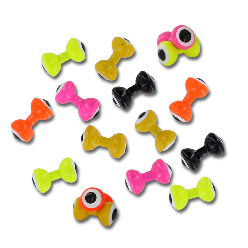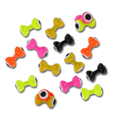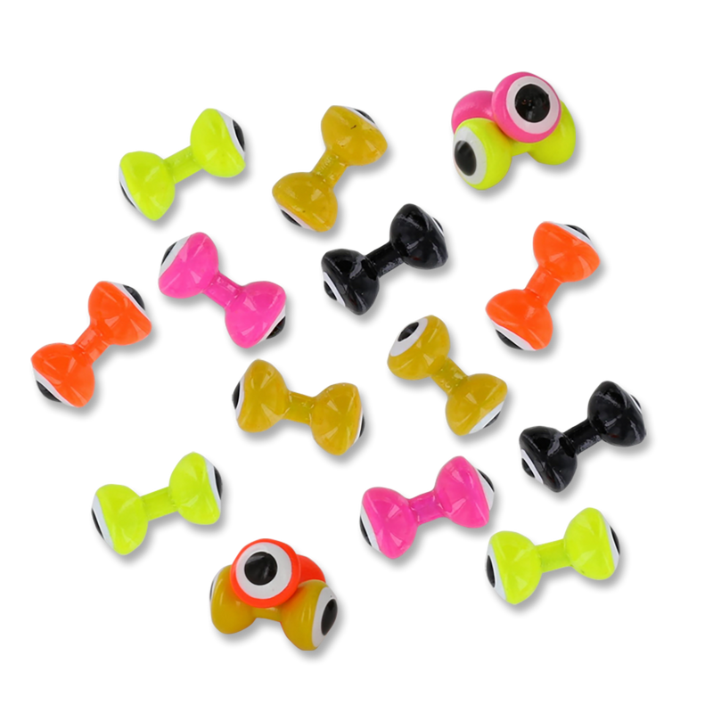 These brightly colored, enameled lead eyes add more than weight to any fresh or saltwater fly and the highly visible black-on-white pupils ought to trigger an attack from any hungry predator with a brain in its head.