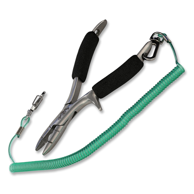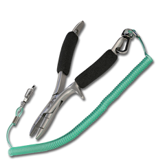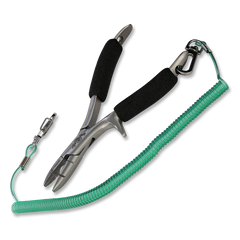 Ideal for fresh and saltwater anglers, this heattreated stainless steel side cutter makes quick work of monofilament and light wire. The aggressive jaw design has two grooves for pressing down barbs and crimping leader sleeves. Foam handles for comfortable gripping. Comes with a holster and wrist lanyard.