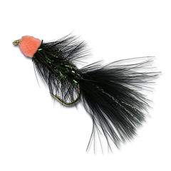 This pattern can be tied in purple or black. For the purple use a pink chenille head and for the black use an orange chenille head. Tie up a bunch without the egg, wash your hands and go back and add the egg as not to get purple or black dye on the egg. Weighting the fly is an option.