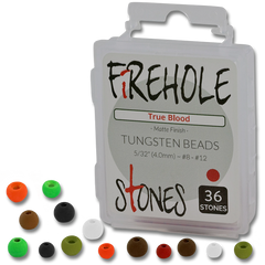 The new Firehole Slotted Tungsten Beads are just like Firehole Stones, but with a slot instead of a hole, so they will fit nicely on jig hooks. The slot makes it possible to get oversized or undersized beads around the bend on standard hooks as well. These beads sport a very nice, stealthy matte finish.