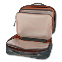 The Backwater Fly Tying Kit packs smart organization into a compact footprint that slips easily into carry-on or checked luggage. Two large see-through pouches keep materials visible and tidy, while a padded interior pocket with a stretch sleeve secures your pedestal base and vise heads. A streamlined hypalon tool page offers quick access to everyday essentials without wasting space or tearing up your delicate tying materials. Load up, zip up, and tie wherever the trip takes you.