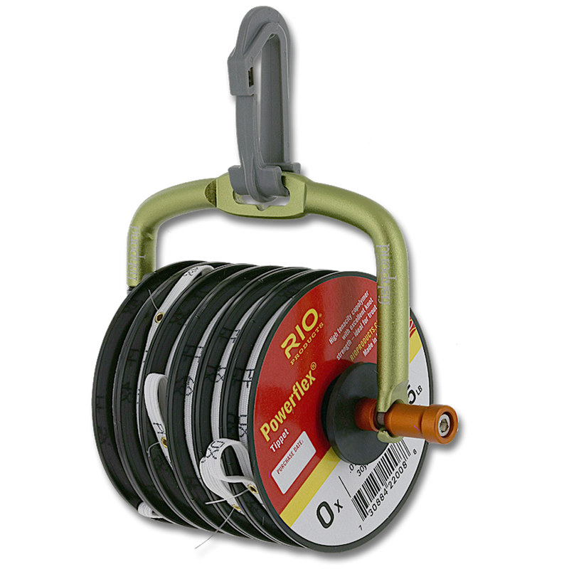 The spring-loaded hinge design allows you to keep all your tippet spools (up to 7 spools) handy. Just clip it on and forget about the days of fishing through your waders, vest or pack for those loose spools. Features a built-in replaceable cutting blade for ultimate convenience getting your fly back on the water.
