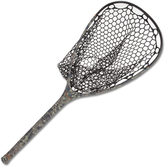 The hardcore lumbar pack wearer wanted a net with a little more length in the handle. Nomad Nets are constructed with carbon fiber/fiberglass composite material. The result is a very lightweight and durable net. Nomad Nets are built for the conditions that prevail where great fishing exists; they are waterproof, UV protected, and float like a cork. Our Nomad Hand Net suited the vest-types, and the Guide Net got the pros' attention. The hardcore lumbar pack wearer, however, wanted a net with a little more length in the handle so they could stuff it between their pack and their back. The Mid-Length Nomad is it.