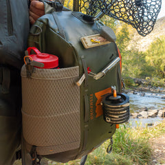 An ambidextrous symmetrical design and adjustable padded shoulder strap cater to left and right-handed casting configurations, ensuring all-day comfort for any angler. Convenience is key, and the Stormshadow Sling Pack delivers, with net slots, a front access pocket, and large die-cut hypalon patches for attaching a wide range of compatible accessories.