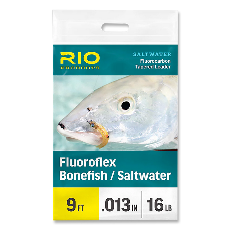 RIO's bonefish/saltwater fluoroflex leaders are made of 100% fluorocarbon, and are the perfect solution when fishing shallow, clear flats and for spooky bones, permit and reds. Each leader has high abrasion resistance and excellent tensile and knot strength and a long butt section that will turn over flies effortlessly. Each leader is 9ft long and available from 8lb (0.009") to 20lb (0.015")Abrasion resistant, knotless fluorocarbon leaders that are perfect for saltwater fishing in clear water.