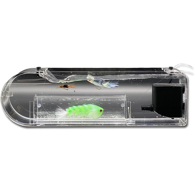 Take your fly tying to the next level with the complete out of the box solution for fly testing and demonstration. The Fly Tester creates a steady circular flow of water with adjustable flow control, allowing you swim up to 3 flies in 2 directions at once – from streamer flies, to top water flies, to nymphs and emergers.