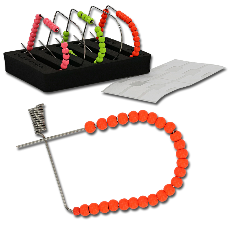Stores, organizes and acts as a steady third hand that helps to feed beads onto hooks with remarkable ease. Will work on nearly all styles of beads, cones and larger hooks.