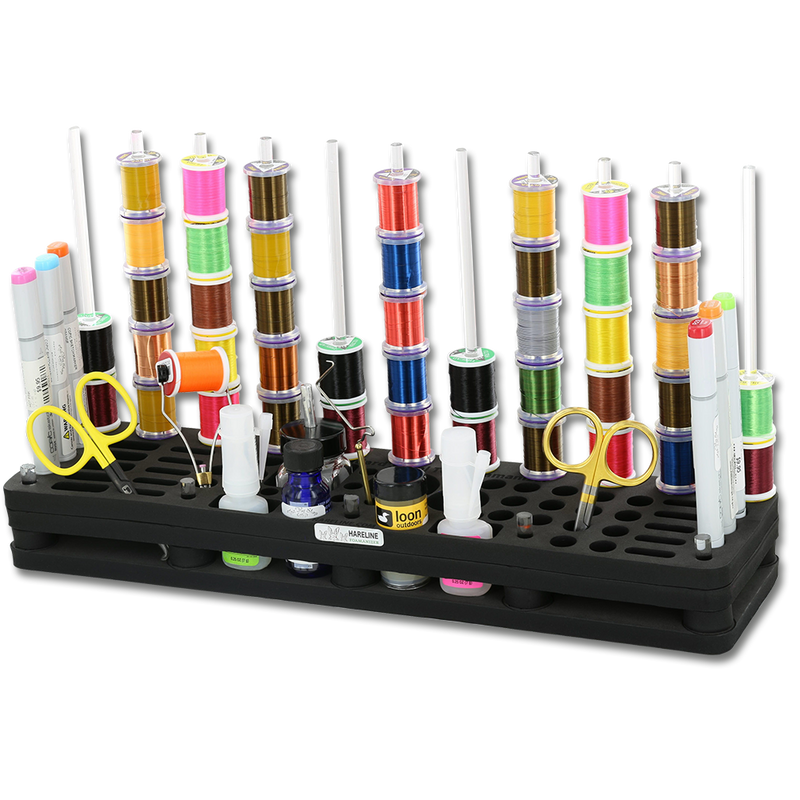 58 openings to hold all of your tying necessities as well as 66 spools of thread, wire, or tinsel.