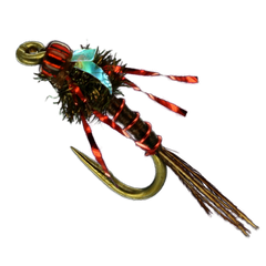 When Hogan was a young guide on the Lower Trinity River he worked for a legendary guide that he would never dare fish in front of. While he learned a ton watching him and guiding behind, the bad news was the fish would not eat a Red Copper John during the mayfly hatches for Hogan like they would him… Kind of a first boat down the run type of fly the ole’copper juan was. So Hogan had to innovate and take elements of an attractor like the copper john, that he knew the fish wanted or liked, with a more accurate silhouette of the bugs they were eating – small baetis, and early PMD's, or small green drake nymphs. The name comes from one day when this fly was really throwing down behind his employer and he told Hogan that he was laying a beating on him like a red headed step child… done, name stuck.