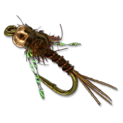 Hogan came up with this fly when he really began paying attention to what Baetis nymphs actually looked like, not what most commercially tied flies in the fly bins told him they looked like. When he started turning over rocks on his local tail water he realized that most of the small baetis nymphs were no thicker then a hook shank and that they were definitely not cylindrical in shape. Furthermore they had color patterns that made them darker on top then underneath which was very different from the standard flashback pattern he was fishing. Utilizing wire and thread where the wire is pinned to the side of the hook shank allowed him to create a trim baetis nymph that is wider than it is tall and NOT cylindrical in nature. The wing case on ALL color schemes is darker than the thorax underneath as this is how the naturals look. While slim flashbacks can imitate the emergence of lighter color wings he knew fish on his tricky tailwaters get hip to that as a dead giveaway of a non natural food source.