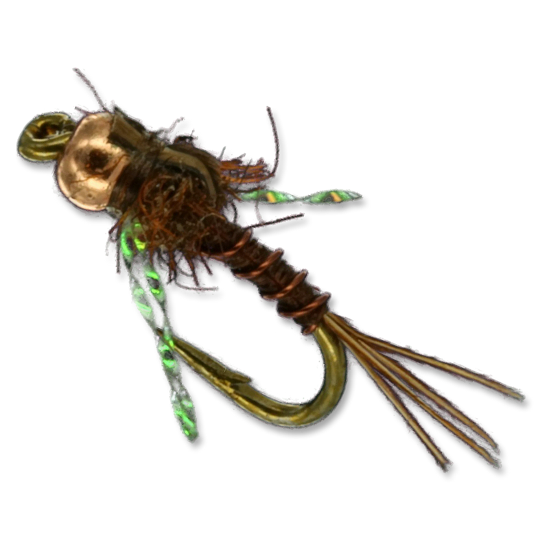 This fly is simple in nature and a true guide fly but like most guide flies…details matter. Many companies and people have tried to tie this fly but most fail on the details. I use only 3 pheasant tails as tail fibers NO MORE as it adds to the thickness of the fly. I also use these fibers to create a thin taper to the Abdomen of the nymph and tack the wire to the side of the hook to create a wider then tall profile… both of these details that are missed by many tiers. The color of the case and dubbing work together as the wing case MUST be darker than the dubbing in EVERY case. Also many tiers use straight Krystal Flash NOT Midge Flash for legs. This is key as Krystal Flash cut short does not move in this small of fly like "legs" – Midge Flash does.
