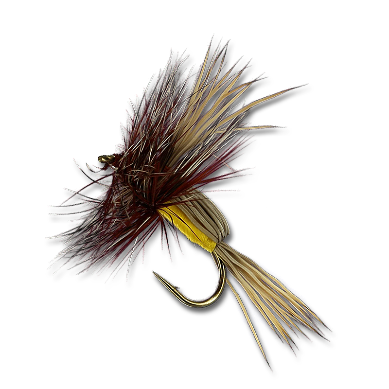 This dry fly is very popular on fast waters around the world because of it's ability to float well. It was developed on the west coast, California, as a variation of Jack Horner's "Horner Deer Hair Fly." It's popularity is contributed to Charlie Brooks, Dan Bailey (named it Goofus Bug), Jack Dennis, Pat and Sig Barnes, and a Canadian named Tom Thumb. However, moost agree that Jack Horner was the original creator.