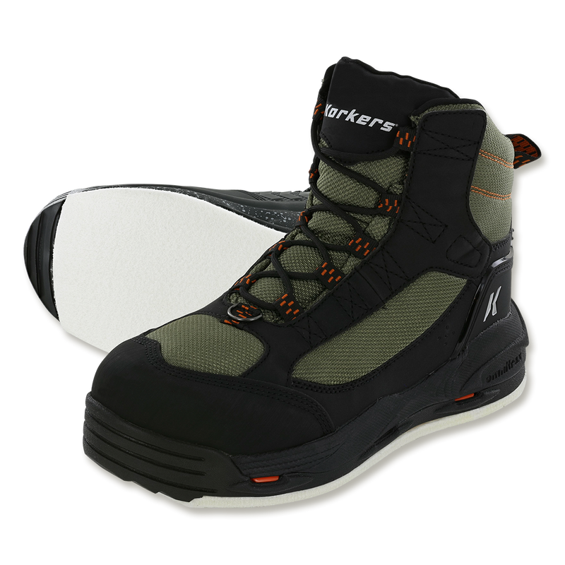 Korkers are the only wading boots to offer this unique interchangeable sole system to meet a variety of traction situations. The OmniTrax Interchangeable soles snap into place easily and securely.