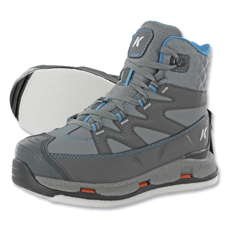 A lightweight, hiking-inspired boot built to withstand rugged freshwater and saltwater terrain. The definitive boot packed with performance and comfort for bad ass women anglers around the world. OmniTrax interchangeable sole system, includes a Kling-on rubber walking sole and a felt wading sole. Traditional laces with durable non-corrosive hardware.