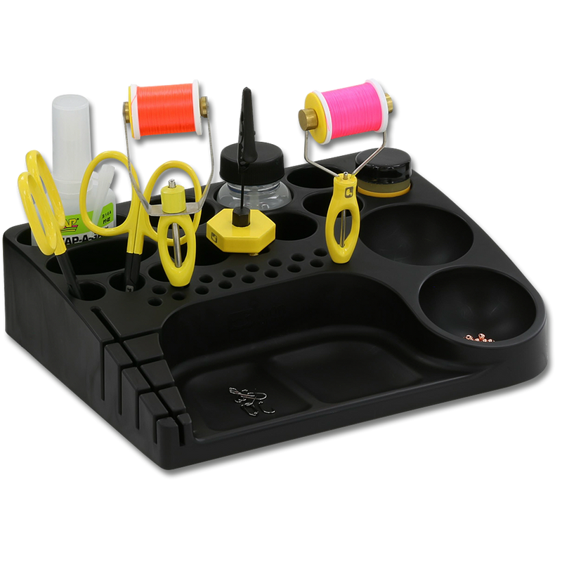 A huge step towards streamlining your fly tying station. Gone are the days of tying flies being synonymous with playing hide & seek with your favorite tools, resins, beads and hooks. The Bench Boss offers a sturdy solution to misplaced tying necessities, ensuring that your time at the vise is spent tying, not searching.