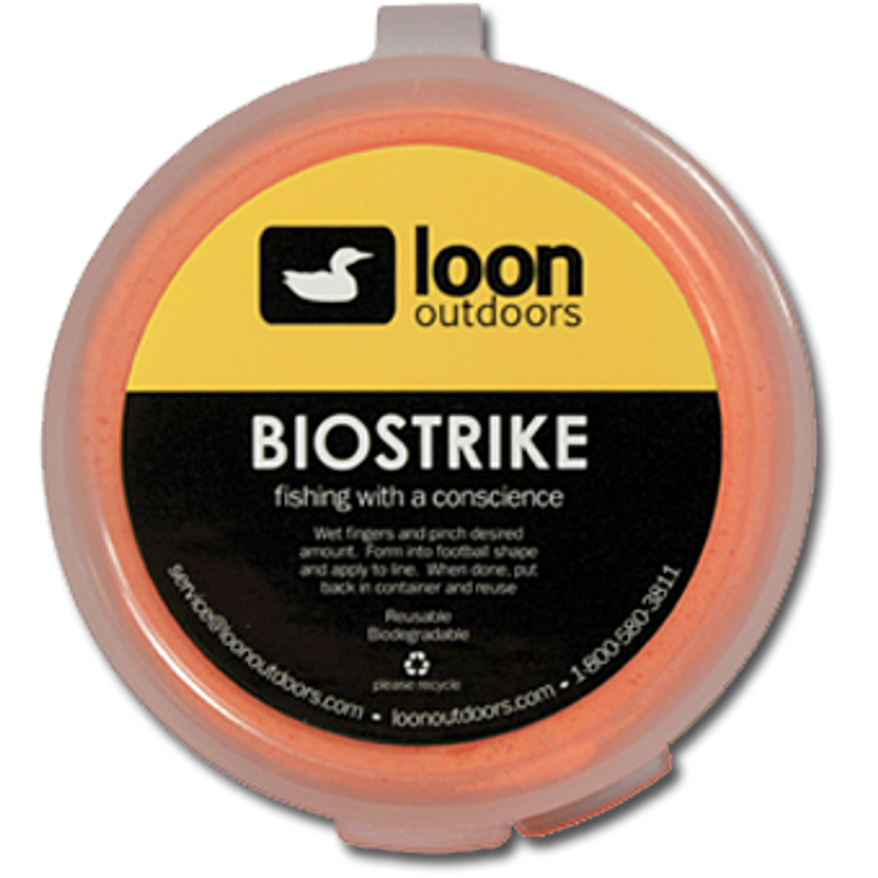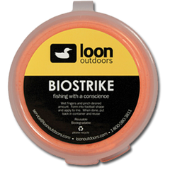 BioStrike floats like a cork. Highly visible, fluorescent orange or yellow, clay-like putty that molds into cylinders or balls. BioStrike clings to the leader anc an be removed.