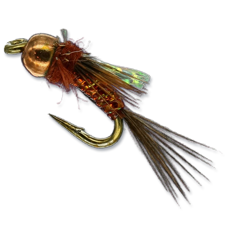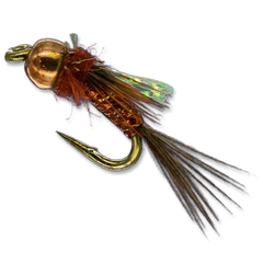 Mercer's Gidget can be used to imitate a midge (particularly a chironomid) or even a small mayfly; although Mercer also has another, similar pattern called the Micro Mayfly for that specific hatch. (You can read about the Micro Mayfly in Mercer's book Creative Fly Tying). With the copper/brass bead, it will sink faster than his Midgeling, making it more useful in "faster" currents and/or deeper waters. But, given the size, it's not going to sink by itself in faster/deeper water. Think split shot or as a dropper behind a heavier nymph in all but the most benign flows.