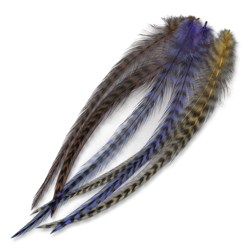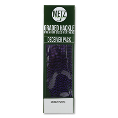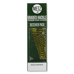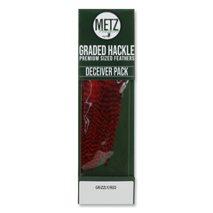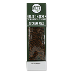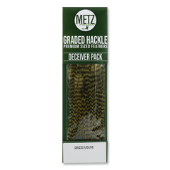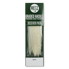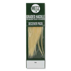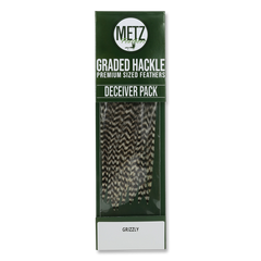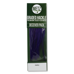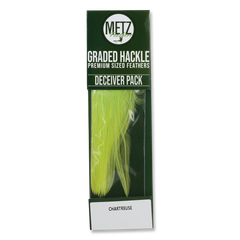 Derived from the lower section of the cape, Metz's Deceiver Pack feathers boast rich, vibrant hues with remarkable consistency, for the creation of beautiful flies. The pliable stems and sturdy barbs offer excellent mobility, responding effortlessly to even the slightest fly movement. These packs are not only exceptionally cost-effective but also versatile, making them ideal for crafting collars on bass poppers and tails for a wide range of streamer applications.