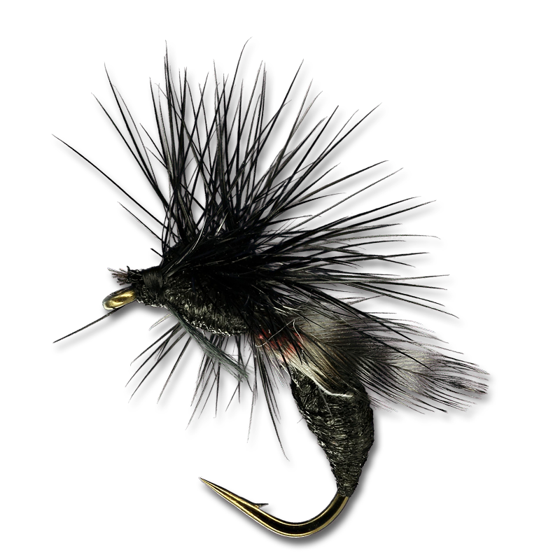 HACKLE: Dry Fly Hackle, black - wrapped around mono or superfloss and then folded over