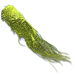 These half saddles from Hareline are a very economical way to obtain a wide assortment of colors without breaking the bank. All of the colors are dyed over natural grizzly.