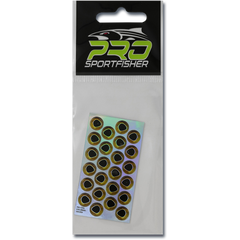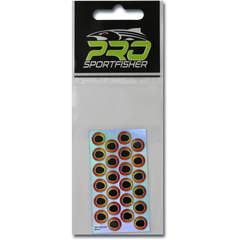 Highly detailed graphics that are a rendering of authentic fish eyes and will add realism to any baitfish or popper pattern.