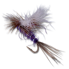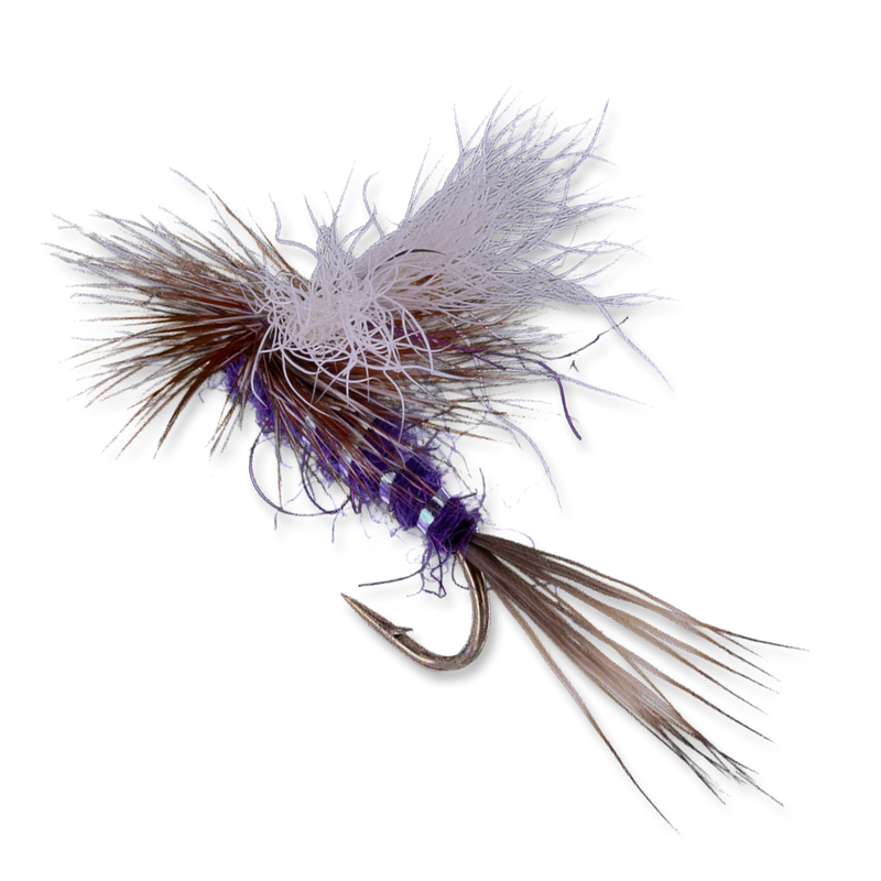This is a pattern that is an offshoot of the recently popularized Purple Haze (a purple Parachute Adams). This fly fishes better because it floats higher and longer, making visibility that much improved.