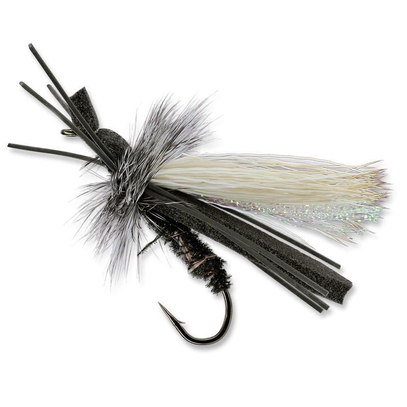 This dual purpose monstrosity is tied with foam, elk hair, peacock and rubberlegs. There's enough foam on this fly to keep it floating for days and it's buoyant enough to support a large tungsten beaded fly beneath it.
