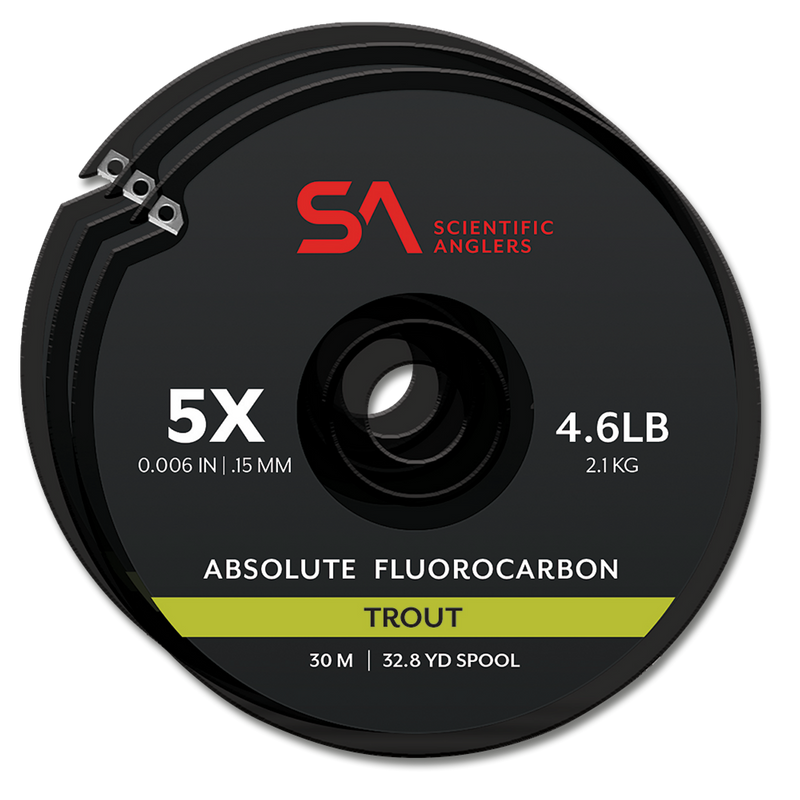 Absolute fluorocarbon tippet boasts a modest price tag and superb breaking strength 15% better than previous materials. It is next to invisible in the water, fooling even the most wary fish. The new silicone band protects the tippet from UV exposure, and the built in line cutter makes life on the water as convenient as possible.