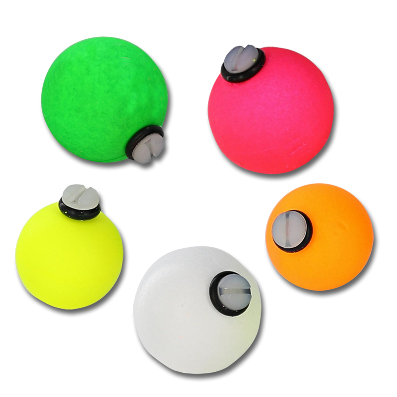 These foam ball indicators are secured with a quick turn of the screw. A simple turn of the screw releases tension on the mono and allows the indicator to be repositioned without disturbing the integrity of the leader.