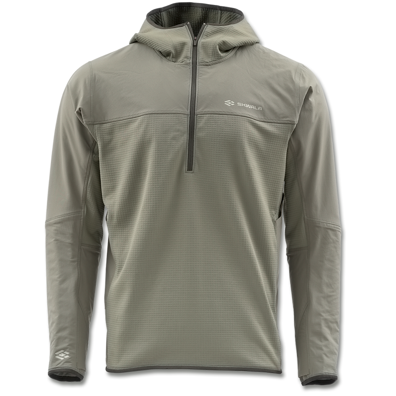 This great new layering piece from Skwala combines the popular fit, UPF protection, and functionality of a sun-hoody with the comfort and breathability of a mid-layer fleece, plus the wind and rain protection of a micro-puffy. Shoulders and sleeves have inverted expedition weight waffle grid back fleece covered with Primmeflex, stretch-woven face for durability as well as wind and water resistance.