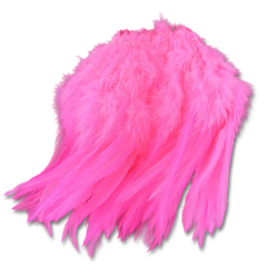 Strung saddle feathers, ranging in size from 5" to 7" that are useful on wooly buggers, saltwater flies, bass patterns, freshwater streamers, collars, and a million other fly tying applications.