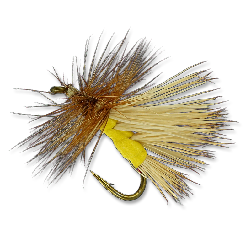 BODY: Super Fine Dry Fly Dubbing, yellow or Razor Foam, yellow