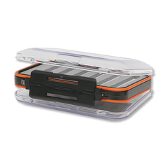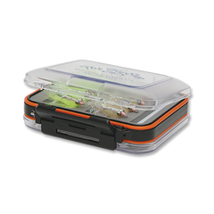 We designed these rugged, waterproof boxes with all the important features. They have two compartments with see-through lids, hinged on both sides that open to identical foam slot configuration compartments that hold a bunch of flies.