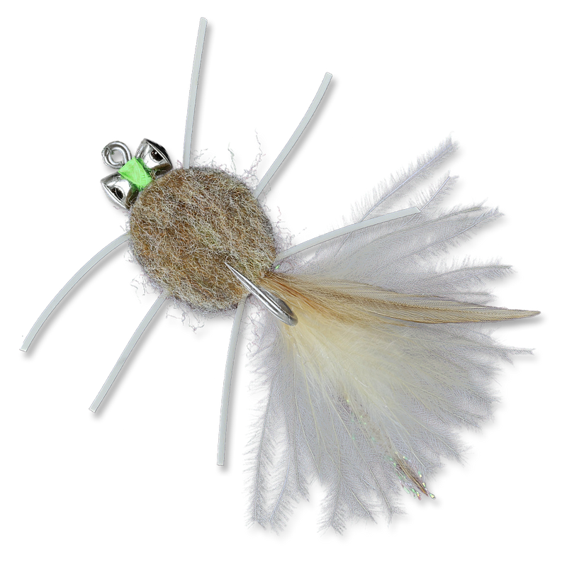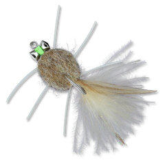 This is another good merkin-style crab imitation that makes good use of synthetic tying materials for the body. The heavy barbell lead eyes make this a claws-up pattern when the fly is at rest, offering a great imitation of the natural. Designed to be fished in typical crab style for permit and a strip and pause style for bonefish.