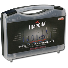 One of the best ways to ensure a positive tying experience is to use good quality tools. Umpqua has taken their very popular Dreamstream line of tying tools, and put the essential ones into this nice 7 piece kit complete with a padded carrying case. Tools included are: