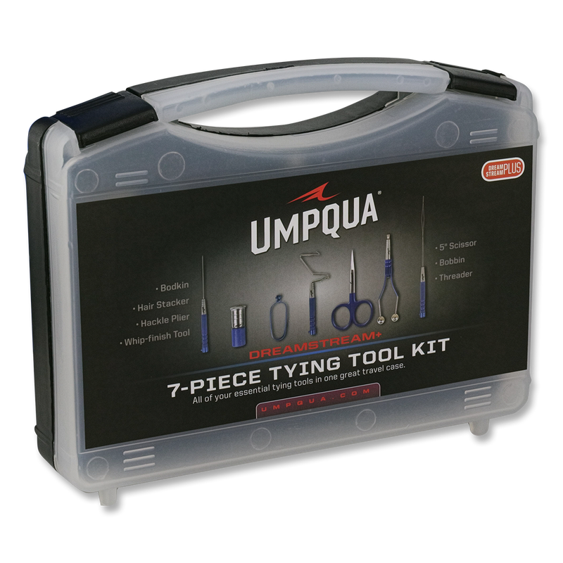 One of the best ways to ensure a positive tying experience is to use good quality tools. Umpqua has taken their very popular Dreamstream line of tying tools, and put the essential ones into this nice 7 piece kit complete with a padded carrying case. Tools included are: