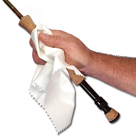 Wet the Wonder Cloth and start rubbing some dirty old cork grip on a $900 fly rod and it'll look like new in minutes! The harder you scrub, the more dirt you'll remove. The results are immediate and the rod is like new again. $4.95 to re-finish the grip of an expensive rod! Our demo rods look like new, and we no longer have to shrink wrap the handles of our display rods to keep them clean.